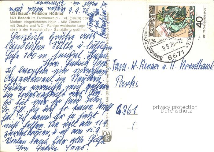 72531982 alte Postkarte Rodeck Gasthaus Pension Huettner postalisch gelaufen Erhaltung siehe scans [LiesaD40 kt094box] KatCode: 11110009475169