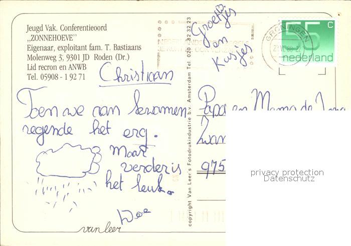 old postcard Roden Netherlands Jeugd Vak. Conferentieoord Zonnehoeve postalisch gelaufen Erhaltung siehe scans