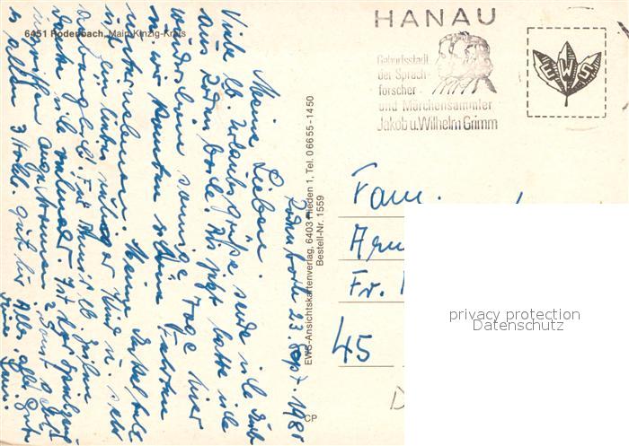 73673467 alte Postkarte Rodenbach Hanau Altstadt Fachwerkhaeuser Rathaus Stadtpanorama Wohnsiedlungen postalisch gelaufen Erhaltung siehe scans [FriedD77] KatCode: 11110006435023