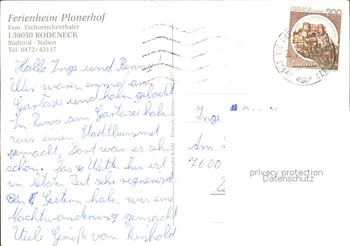 old postcard Rodeneck Italien Ferienheim Plonerhof postalisch gelaufen Erhaltung siehe scans