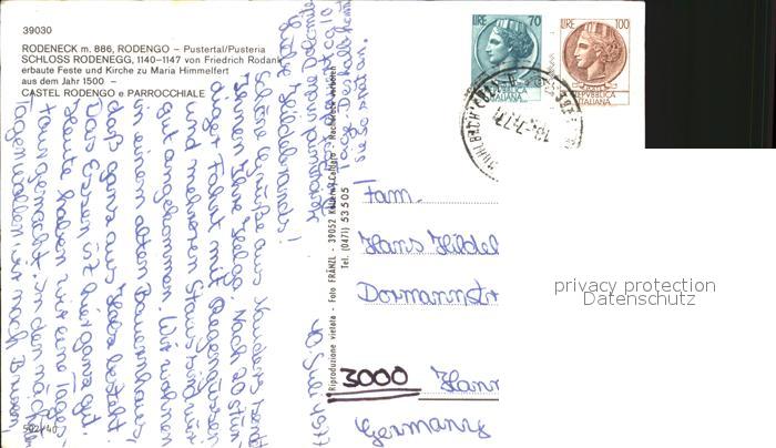 old postcard Rodeneck Italien Schloss postalisch gelaufen Erhaltung siehe scans [NatalD47]
