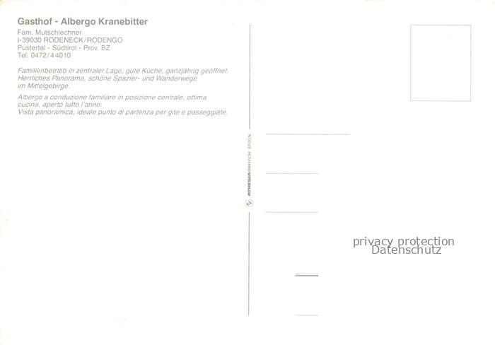 74029443 Rodeneck Muehlbach Pustertal Trentino IT Gasthof Albergo Kranebitte postalisch nicht gelaufen Erhaltung siehe scans [FriedD77] KatCode: 11240000000000