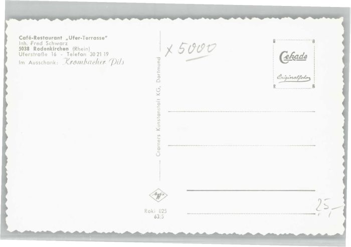 40662862 Rodenkirchen Cafe Restaurant Ufer Terrasse postalisch nicht gelaufen KatCode: