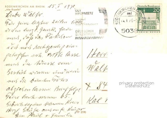 72627518 alte Postkarte Rodenkirchen Koeln Alte Kapelle postalisch gelaufen Erhaltung siehe scans [FriedD77] KatCode: 11110005315000