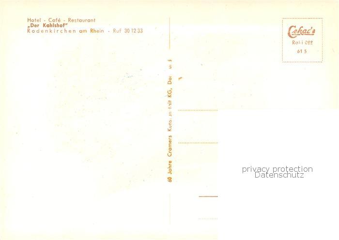 73759199 Rodenkirchen Koeln Hotel-Cafe-Rest. Der Kahlshof Aussenansicht m. Terrasse postalisch nicht gelaufen Erhaltung siehe scans [LiesaD40] KatCode: 11110005315000