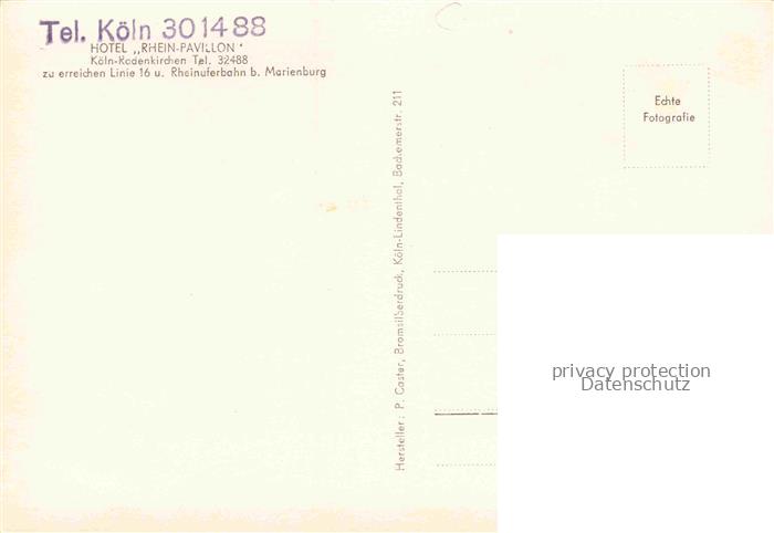 74034616 Rodenkirchen Koeln Hotel Rhein Pavillon postalisch nicht gelaufen Erhaltung siehe scans [WerneD78] KatCode: 11110005315000