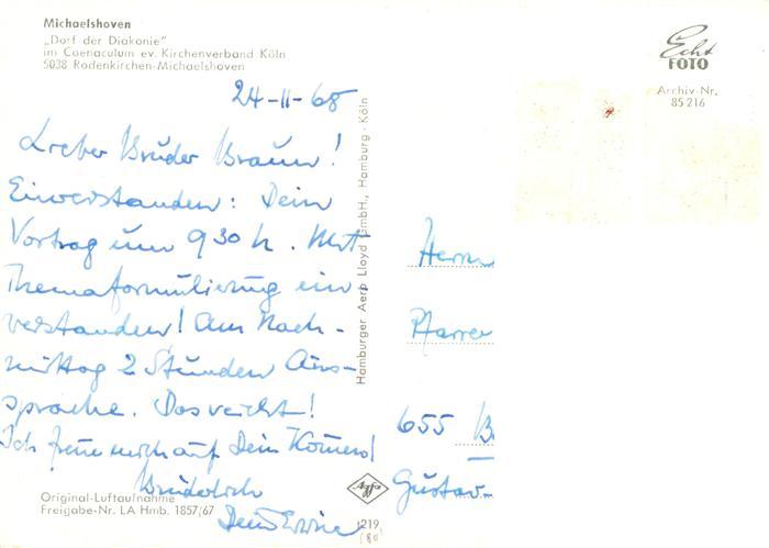 73934878 Rodenkirchen Koeln Michaelshoven Fliegeraufnahme postalisch nicht gelaufen Erhaltung siehe scans [FriedD77] KatCode: 11110005315000