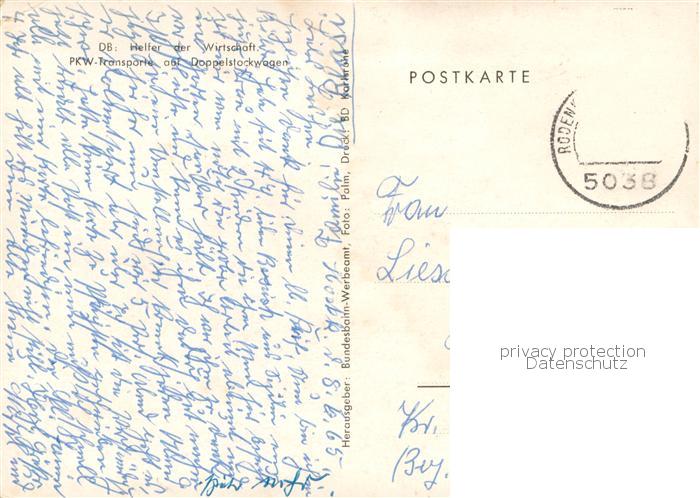 73776089 alte Postkarte Rodenkirchen Koeln PWK Transporte auf Doppelstockwagen der Deutschen Bahn postalisch gelaufen Erhaltung siehe scans [WerneD78] KatCode: 11110005315000