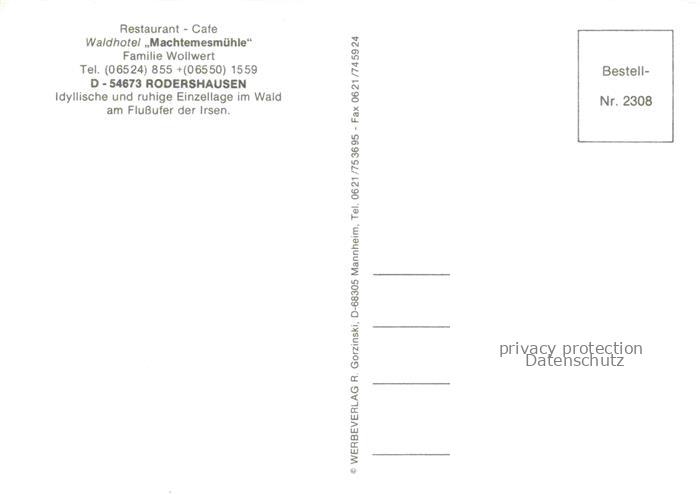 74040760 Rodershausen Waldhotel Machtemesmuehle Restaurant Café Fremdenzimmer postalisch nicht gelaufen Erhaltung siehe scans [FriedD77] KatCode: 11110007232110