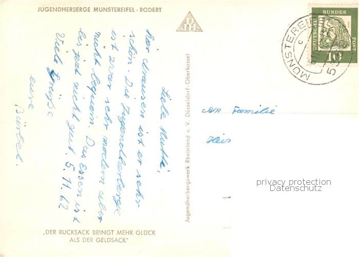 73855290 alte Postkarte Rodert Jugendherberge postalisch gelaufen Erhaltung siehe scans [FriedD77] KatCode: 11110005366004