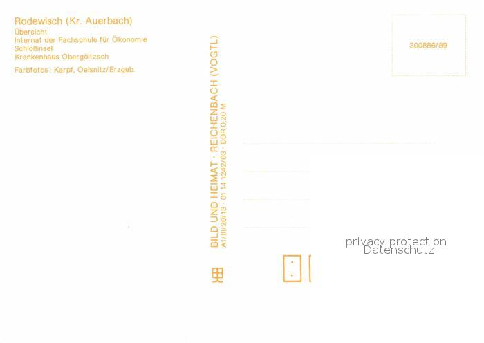 72651956 Rodewisch Panorama Internat der Fachschule fuer oekonomie Schlossinsel Krankenahsu Obergoeltzsch postalisch nicht gelaufen Erhaltung siehe scans [WerneD78] KatCode: 11110014178540
