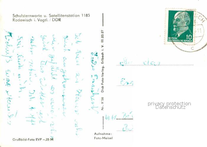 72648656 alte Postkarte Rodewisch Schlulsternwarte Satellitenstation postalisch gelaufen Erhaltung siehe scans [NatalD47] KatCode: 11110014178540