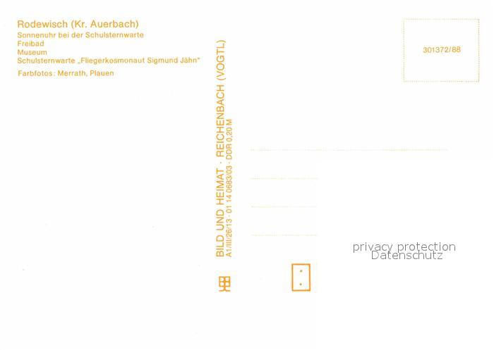 72651964 Rodewisch Sonnenuhr Schulsternwarte Fliegerkosmonaut Sigmund Jaehn Freibad Museum postalisch nicht gelaufen Erhaltung siehe scans [WerneD78] KatCode: 11110014178540