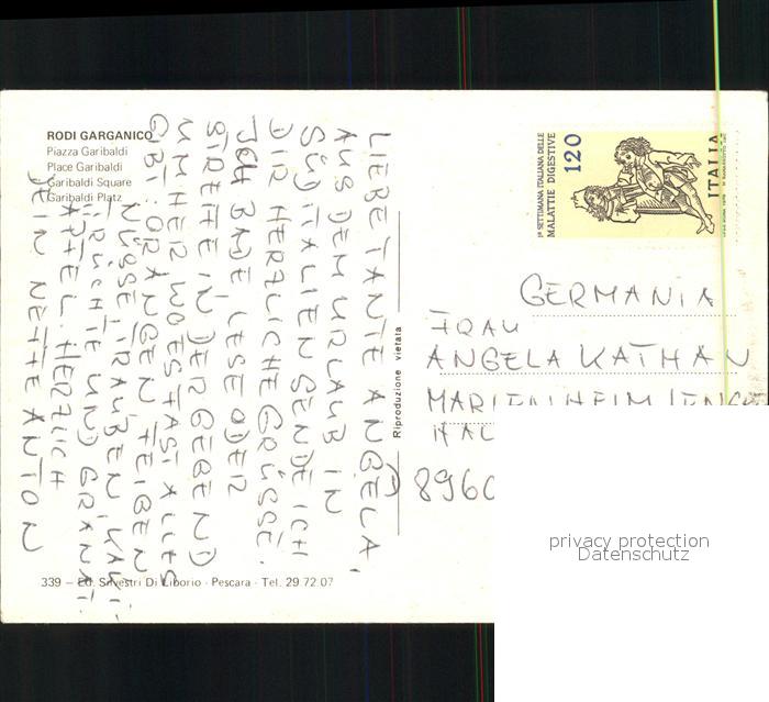 Rodi Garganico Piazza Garibaldi postalisch nicht gelaufen Erhaltung siehe scans
