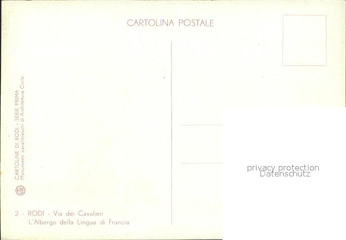Rodi Rhodes Rhodos Albergo della Lingua di Francia Via dei Cavalieri postalisch nicht gelaufen Erhaltung siehe scans