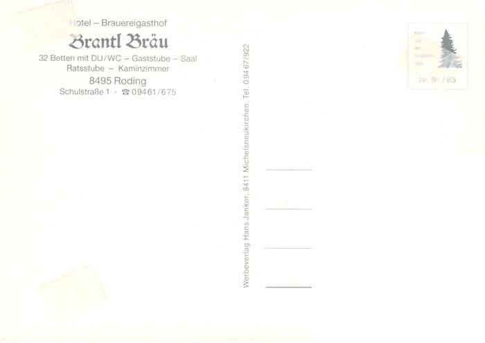 73946667 Roding Regen Bayern Hotel Brauereigasthof Brantl Braeu Restaurant postalisch nicht gelaufen Erhaltung siehe scans [FriedD77] KatCode: 11110009372153