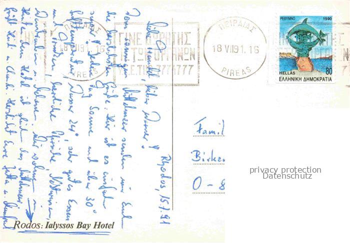 74043651 old postcard Rodos Rhodes Rhodos Greece Ialyssos Bay Hotel Swimming Pool postalisch gelaufen Erhaltung siehe scans [FriedD77] KatCode: 11190