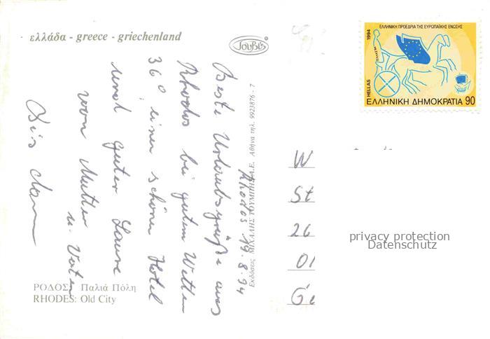 74015055 old postcard Rodos Rhodes Rhodos Greece Old town the evening postalisch gelaufen Erhaltung siehe scans [FriedD77] KatCode: 11190