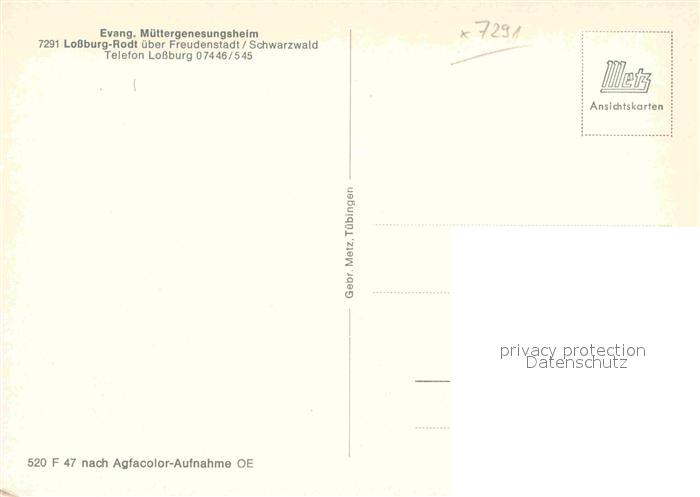 72905659 Rodt Lossburg Evangelisches Muettergenesungsheim Schwarzwald postalisch nicht gelaufen Erhaltung siehe scans [FriedD77] KatCode: 11110008237045