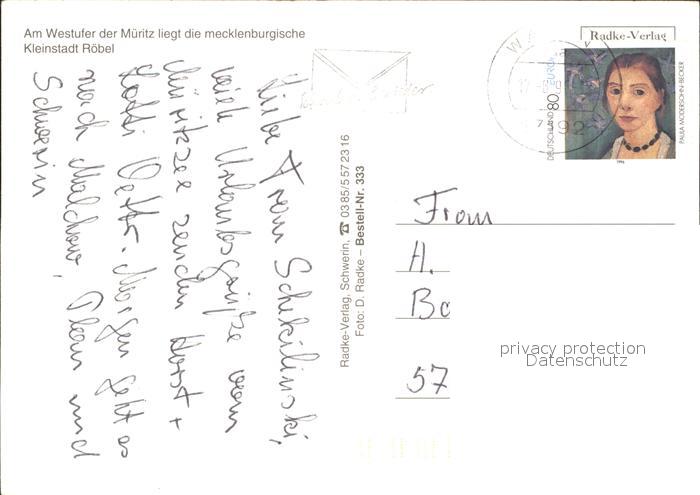 72377362 alte Postkarte Roebel Mueritz postalisch gelaufen Erhaltung siehe scans KatCode: 11110013056057