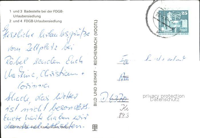 alte Postkarte Roebel Mueritz Badestelle FDGB-Urlaubersiedlung postalisch gelaufen Erhaltung siehe scans