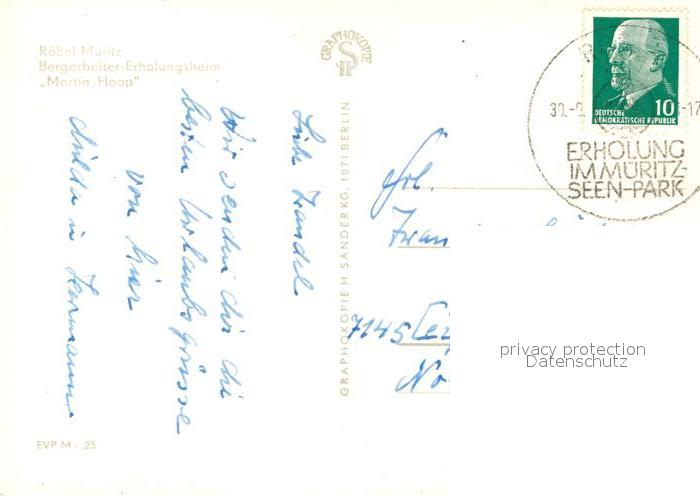 73142889 alte Postkarte Roebel Mueritz Bergarbeiter Erholungsheim Martin Hoop postalisch gelaufen Erhaltung siehe scans [FriedD77] KatCode: 11110013056057