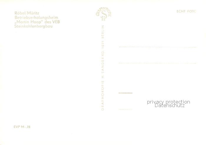 73783475 Roebel Mueritz Betriebserholungsheim Martin Hoop des VEB Steinkohlenbergbau postalisch nicht gelaufen Erhaltung siehe scans [FriedD77] KatCode: 11110013056057