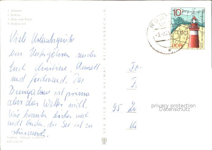 72022622 alte Postkarte Roebel Mueritz Camping Rathaus Robel postalisch gelaufen Erhaltung siehe scans KatCode: 11110013056057