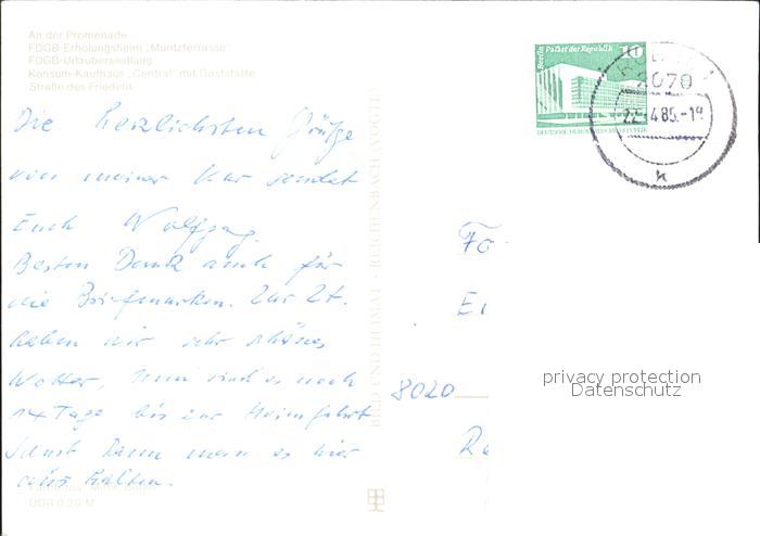 72373203 alte Postkarte Roebel Mueritz Erholungsheim Mueritzterrasse Kaufhaus Central Strasse des Friedens postalisch gelaufen Erhaltung siehe scans KatCode: 11110013056057