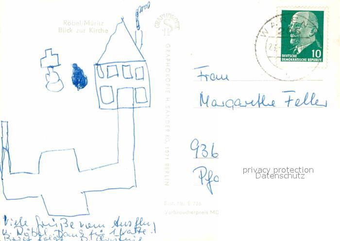 72640773 alte Postkarte Roebel Mueritz Kirche postalisch gelaufen Erhaltung siehe scans [KathaD79] KatCode: 11110013056057