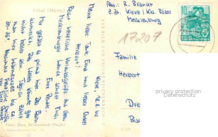 72634616 alte Postkarte Roebel Mueritz Kirche Ortsansicht Panorama postalisch gelaufen Erhaltung siehe scans [KathaD79] KatCode: 11110013056057