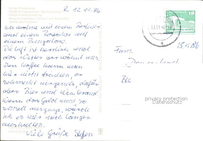 72291568 alte Postkarte Roebel Mueritz Promenade FDGB Erholungsheim Muritzterrasse Strasse des Friedens postalisch gelaufen Erhaltung siehe scans KatCode: 11110013056057