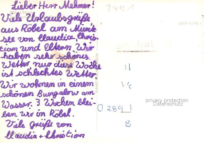 73830422 Roebel Mueritz Seepromenade und Seglerheim postalisch nicht gelaufen Erhaltung siehe scans [WerneD78] KatCode: 11110013056057