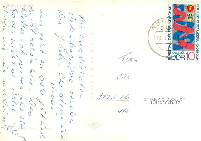 73046178 alte Postkarte Roebel Mueritz Seglerhafen postalisch gelaufen Erhaltung siehe scans [KathaD81] KatCode: 11110013056057