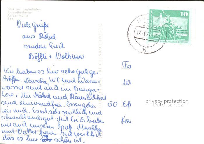 72557238 alte Postkarte Roebel Mueritz Seglerhafen Jugendherberge BAd postalisch gelaufen Erhaltung siehe scans [KathaD79] KatCode: 11110013056057