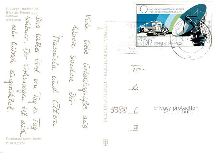 73012079 alte Postkarte Roebel Mueritz Sorge Oberschule Blick zur Promenade Rathaus Am Hafen postalisch gelaufen Erhaltung siehe scans [WerneD78] KatCode: 11110013056057