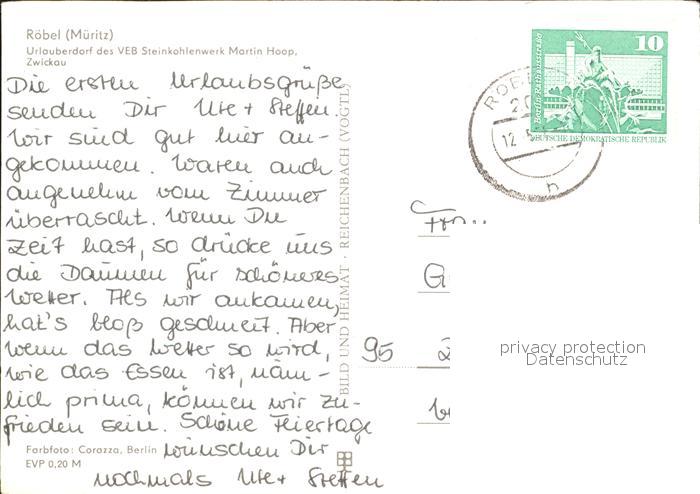 72108700 alte Postkarte Roebel Mueritz Strand Steg Cafe postalisch gelaufen Erhaltung siehe scans KatCode: 11110013056057