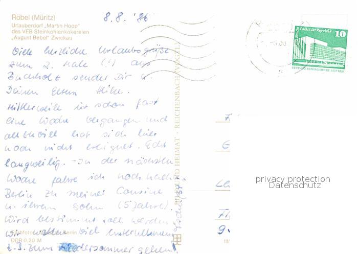 Roebel Mueritz Urlauberdorf martin Hoop des VEB August Bebel Zwickau Details