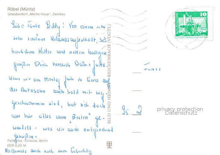 72616319 alte Postkarte Roebel Mueritz Urlauberdorf Martin Hoop postalisch gelaufen Erhaltung siehe scans [FriedD77] KatCode: 11110013056057