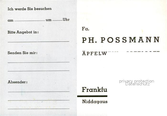 73706785 Roedelheim Frankfurt Ph. Possmann aepfelwein-Apfelsaft Bestellungsschein postalisch nicht gelaufen Keine Postkarte (siehe scan) Erhaltung siehe scans [LiesaD40] KatCode: 11110006412000