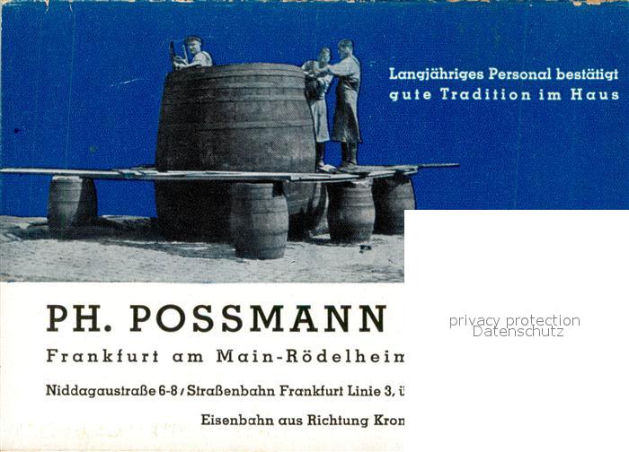 73706784 Roedelheim Frankfurt Ph. Possmann Weinkellerei postalisch nicht gelaufen Werbekarte (keine Postkarte) Erhaltung siehe scans [LiesaD40] KatCode: 11110006412000