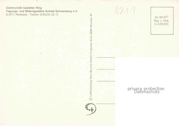 74054354 Roedelsee Bayern Communitaet Casteller Ring Schloss Schwanberg postalisch nicht gelaufen Fliegeraufnahme Erhaltung siehe scans [WerneD78] KatCode: 11110009675161
