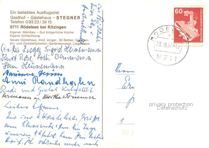 73731198 alte Postkarte Roedelsee Gasthof Gaestehaus Stegner Ausflugsziel Blick zur Kirche postalisch gelaufen Erhaltung siehe scans [FriedD77] KatCode: 11110009675161