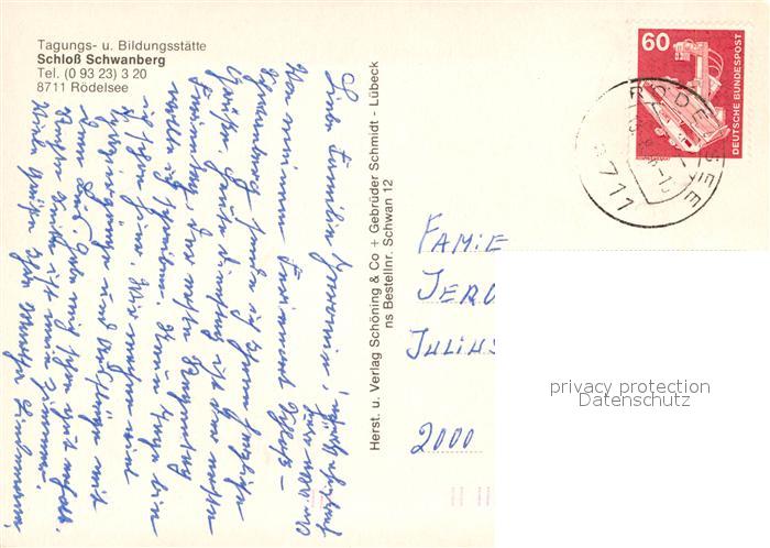 72974067 alte Postkarte Roedelsee Schloss Schwanberg postalisch gelaufen Erhaltung siehe scans [PaolaD17] KatCode: 11110009675161