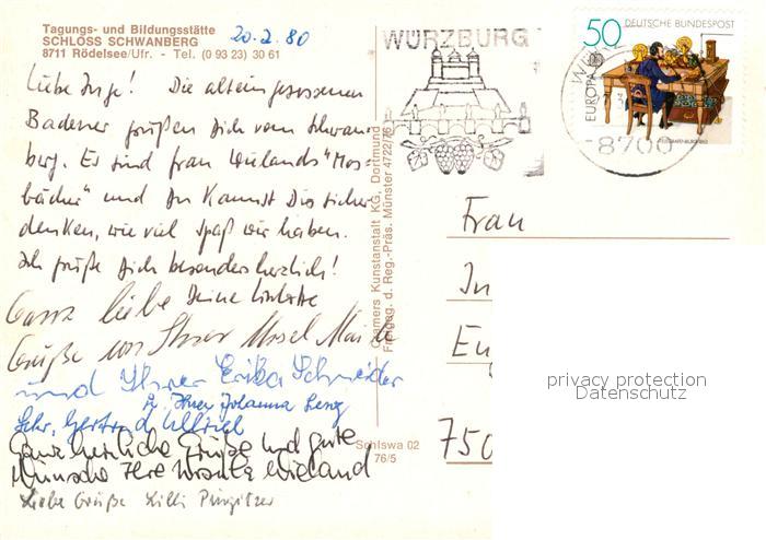 73209945 alte Postkarte Roedelsee Schloss Schwanberg Fliegeraufnahme postalisch gelaufen Erhaltung siehe scans [WerneD78] KatCode: 11110009675161