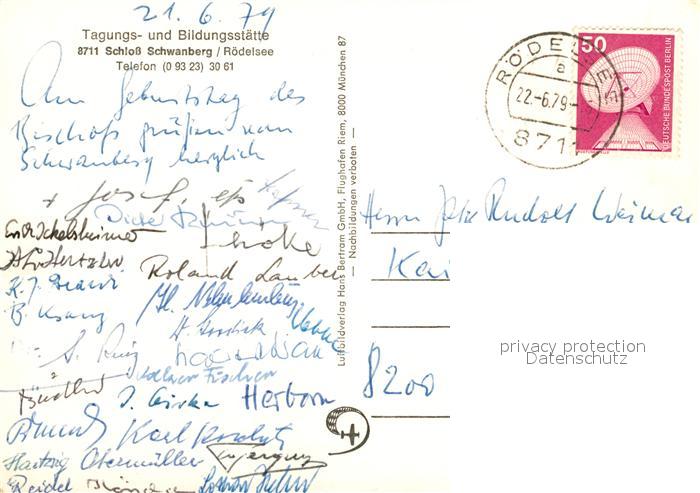 73101623 alte Postkarte Roedelsee Schloss Schwanberg Fliegeraufnahme postalisch gelaufen Erhaltung siehe scans [WerneD78] KatCode: 11110009675161