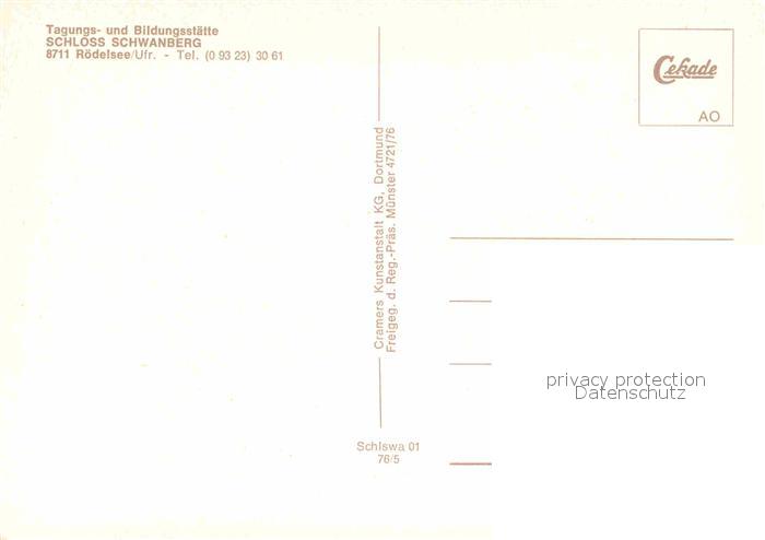 72905703 Roedelsee Tagungs und Bildungsstaette Schloss Schwanberg Fliegeraufnahme postalisch nicht gelaufen Erhaltung siehe scans [FriedD77] KatCode: 11110009675161