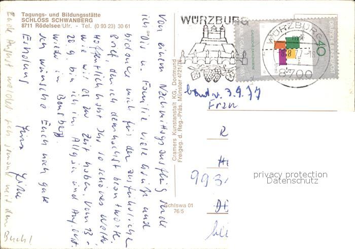 72060119 alte Postkarte Roedelsee Tagungs und BildungsstaetteSchloss Schwanberg postalisch gelaufen Erhaltung siehe scans KatCode: 11110009675161