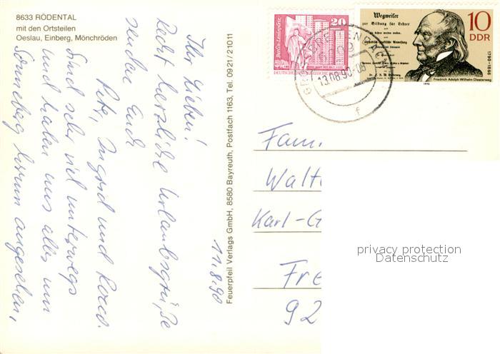 73671398 alte Postkarte Roedental Ansichten mit den Ortsteilen Oeslau Einberg Moenchroeden postalisch gelaufen Erhaltung siehe scans [FriedD77] KatCode: 11110009473159