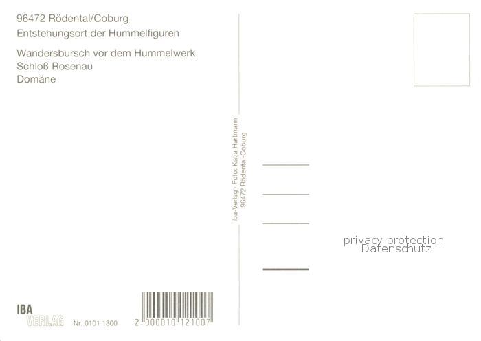 73736289 Roedental Entstehungsort der Hummelfiguren Wandersbursch Hummelwerk Schloss Rosenau Domaene postalisch nicht gelaufen Erhaltung siehe scans [FriedD77] KatCode: 11110009473159